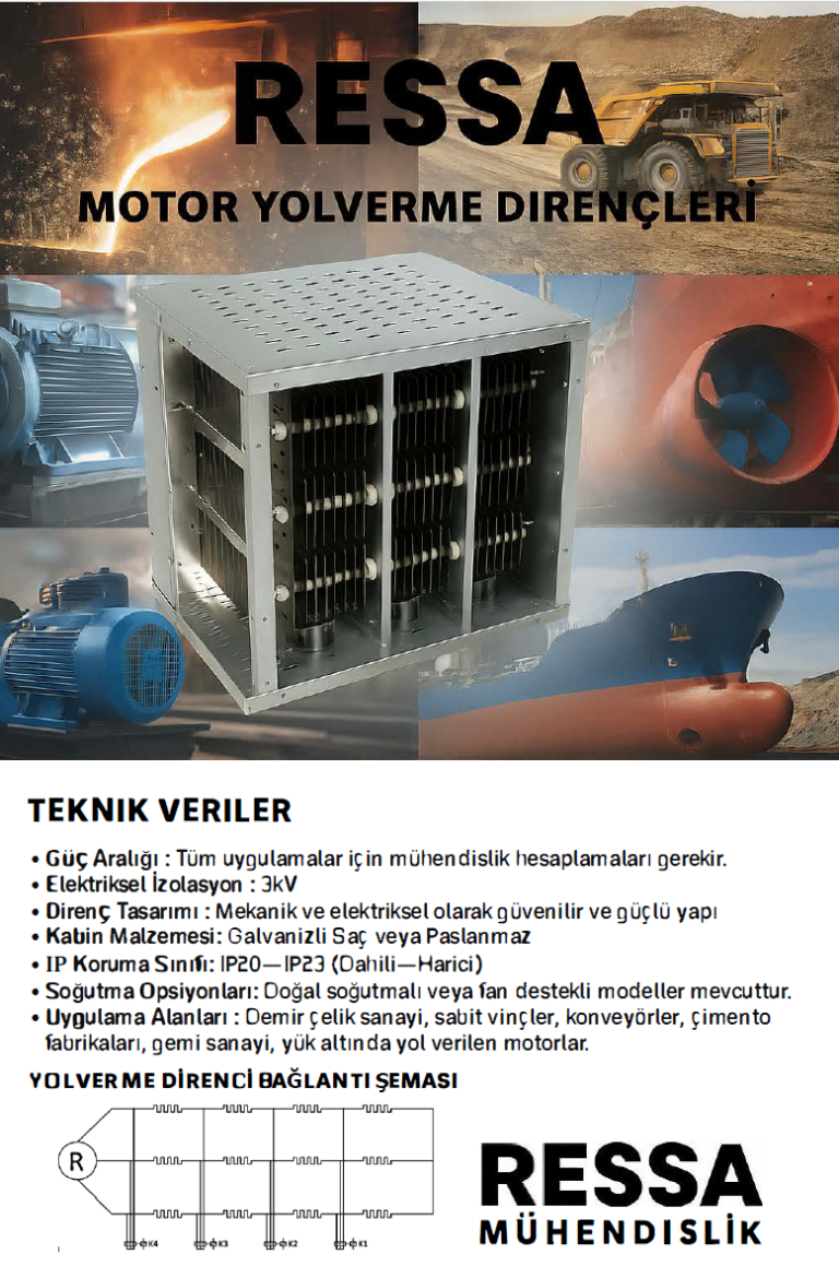 Motor yolverme direnci, elektrik motorlarının çalıştırılmasında kullanılan, motorun başlangıç akımını kontrol etmek amacıyla devreye dahil edilen bir direnç elemanıdır. Bu direnç, motorun başlama anındaki yüksek akımın sınırlanmasını sağlayarak, motorun yavaşça ve kontrollü bir şekilde dönmesini mümkün kılar. Bu sayede, motorun mekanik ve elektriksel bileşenlerinde aşırı yüklenme, aşırı ısınma ya da zarar görme riski azaltılır.